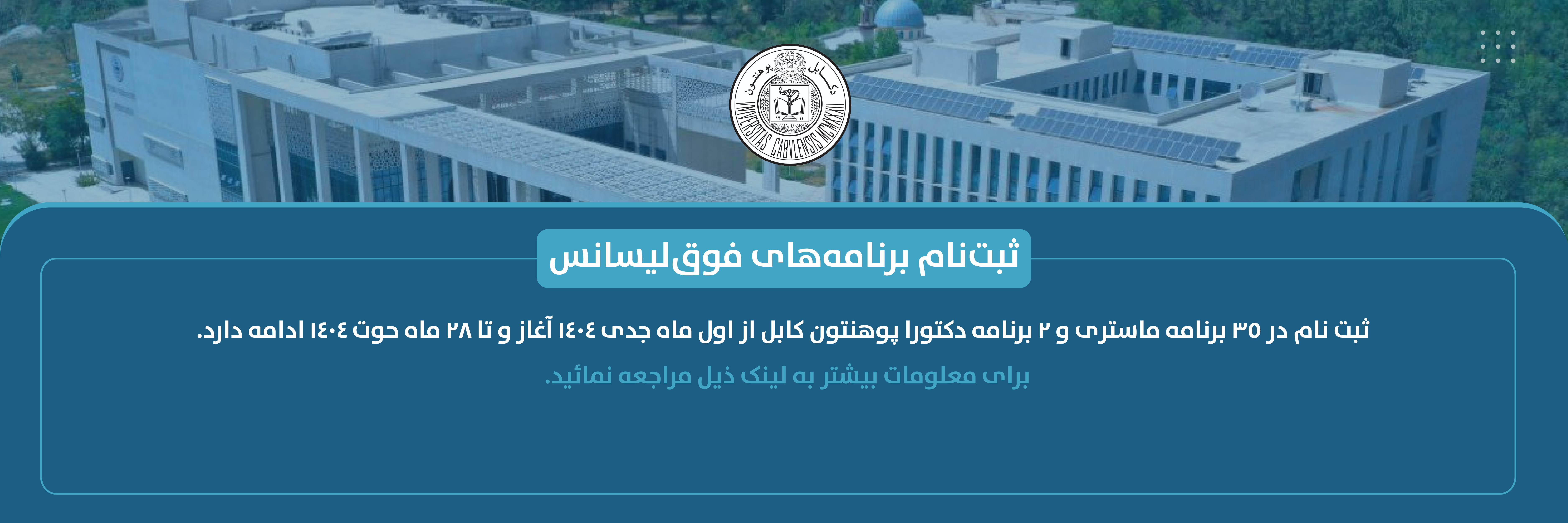 ټویټر: https://x.com/KabulUnversity?t=VwgRbOH1RZY0JFnK0YVcoA&s=09
